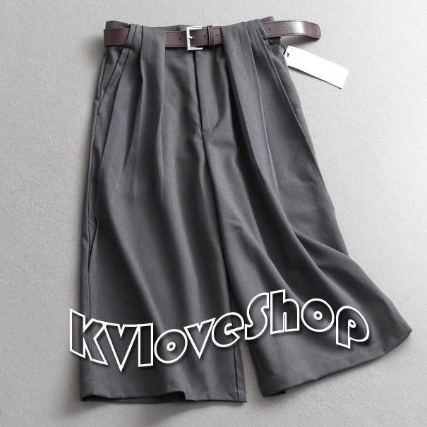 優寶購物《ubao.Tw》特貨品商城,黑貓宅配,取貨付款,KVLOVE SHOP〥外貿單 時尚深灰色配腰帶小寬鬆闊腿西裝7分褲〥特價 | Yahoo拍賣