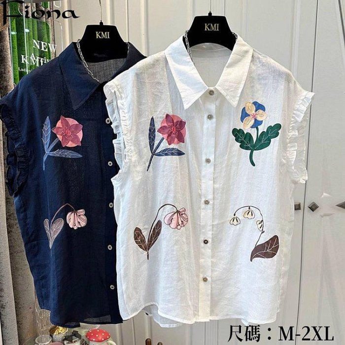優寶購物《ubao.Tw》特貨品商城,黑貓宅配,取貨付款,✨免運✨平價衣 刺繡花朵 荷葉無袖 襯衫 棉麻衫 寬鬆上衣 【費歐娜 】M250705 | Yahoo拍賣