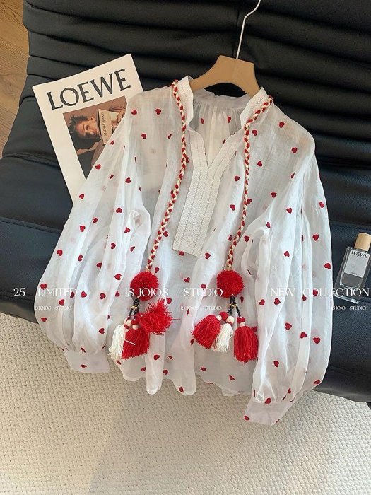 優寶購物《ubao.Tw》特貨品商城,黑貓宅配,取貨付款,手工流蘇編織刺繡♥️愛心亞麻V領長袖襯衫 | Yahoo拍賣
