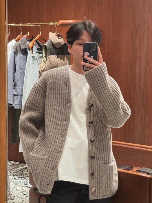 優寶購物《ubao.Tw》特貨品商城,黑貓宅配,取貨付款,BV 2025ss新款純色V領單排扣寬松長袖針織衫 男款 灰褐色 | Yahoo拍賣
