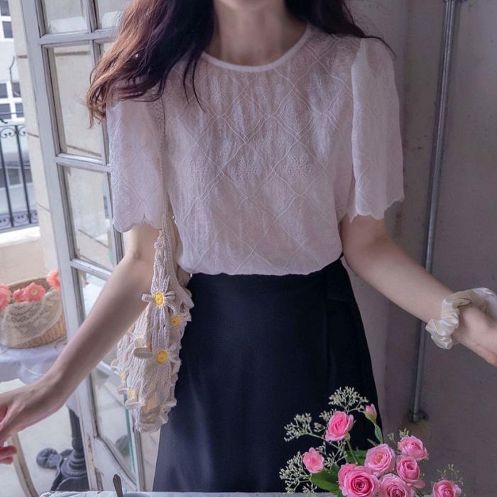 優寶購物《ubao.Tw》特貨品商城,黑貓宅配,取貨付款,/SAFA/ 正韓 夏日氣息高品質菱格花朵刺繡公主袖絲棉衣【250727A048】 | Yahoo拍賣