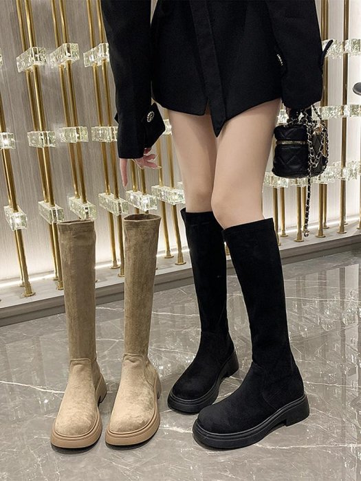 優寶購物《ubao.Tw》特貨品商城,黑貓宅配,取貨付款,新上架2025款絨面長筒靴女小個子不過膝長靴法式平口彈力瘦瘦靴復古高筒騎士靴 | Yahoo拍賣