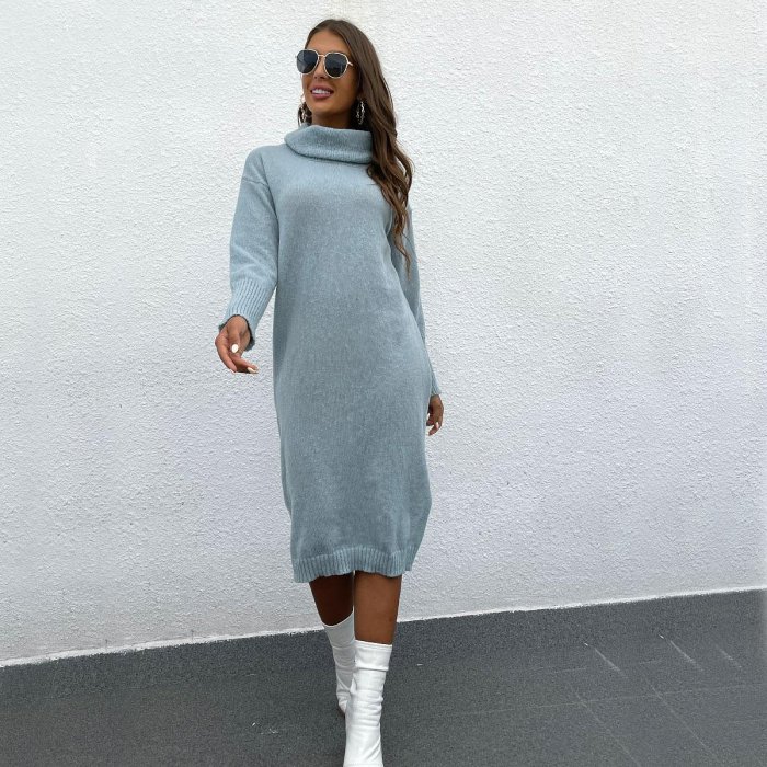 優寶購物《ubao.Tw》特貨品商城,黑貓宅配,取貨付款,秋冬歐美女裝毛衫長袖翻領高領套頭毛衣裙廠價直銷 | Yahoo拍賣