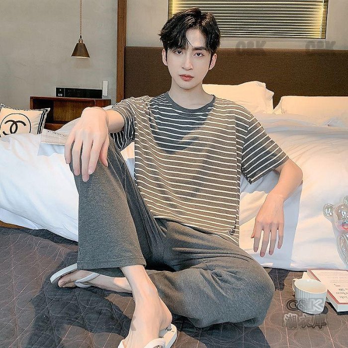 優寶購物《ubao.Tw》特貨品商城,黑貓宅配,取貨付款,潮衣庫『男士睡衣夏季短袖長褲男款青少年薄款夏天男式夏款家居服套裝』睡衣睡褲成套睡衣褲家居服 | Yahoo拍賣