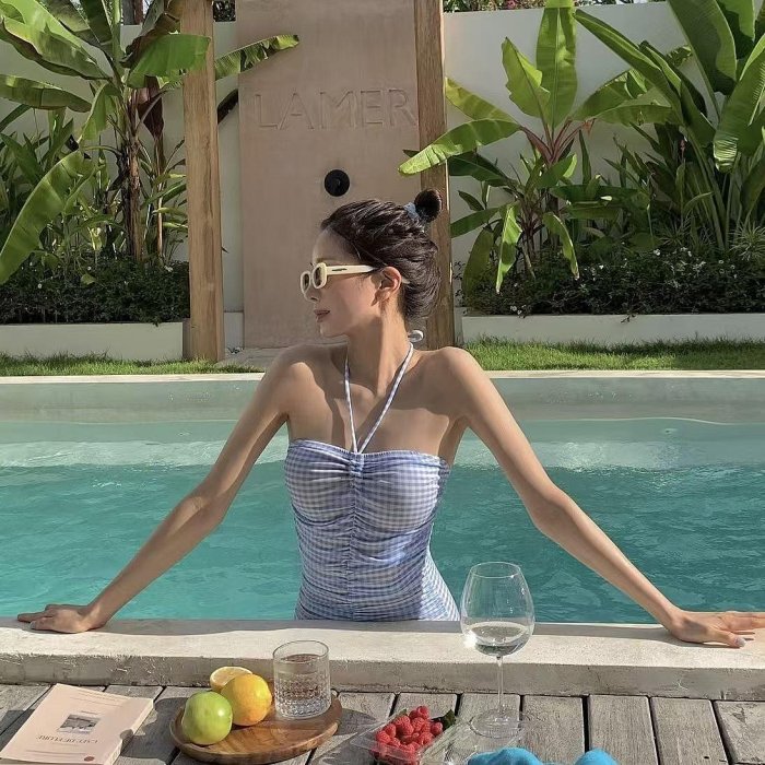 優寶購物《ubao.Tw》特貨品商城,黑貓宅配,取貨付款,韓版新款抹胸少女風可愛格子抽繩遮肚顯瘦度假姐妹泳衣女 | Yahoo拍賣
