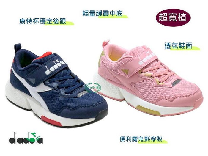 優寶購物《ubao.Tw》特貨品商城,黑貓宅配,取貨付款,零碼出清~DIADORA 大童段超寬楦運動休閒慢跑鞋 -藍11085-粉紅11086 | Yahoo拍賣