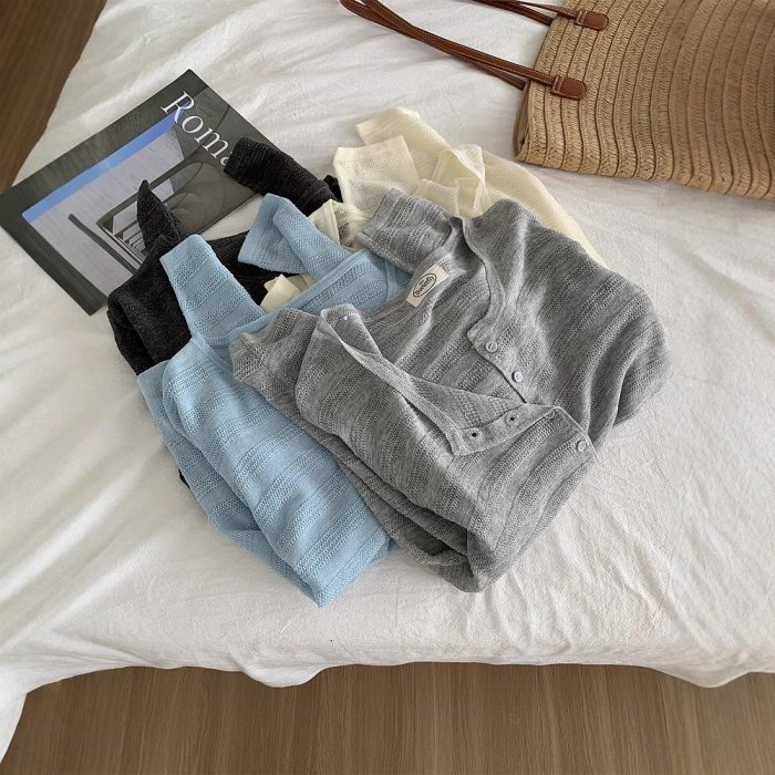 優寶購物《ubao.Tw》特貨品商城,黑貓宅配,取貨付款,早秋天絲亞麻輕薄透氣針織開衫女簡約韓版鬆弛感短款長袖冰絲外套╭☆ Queen☆like* 嚴選女裝 #51181 | Yahoo拍賣