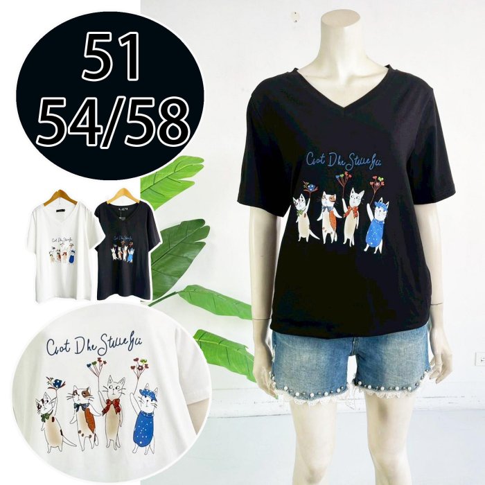 優寶購物《ubao.Tw》特貨品商城,黑貓宅配,取貨付款,現貨《黑54.58》大尺碼短袖上衣【73439】V領插畫貓短版T棉質上衣/大尺碼上衣【時尚TINA】 | Yahoo拍賣