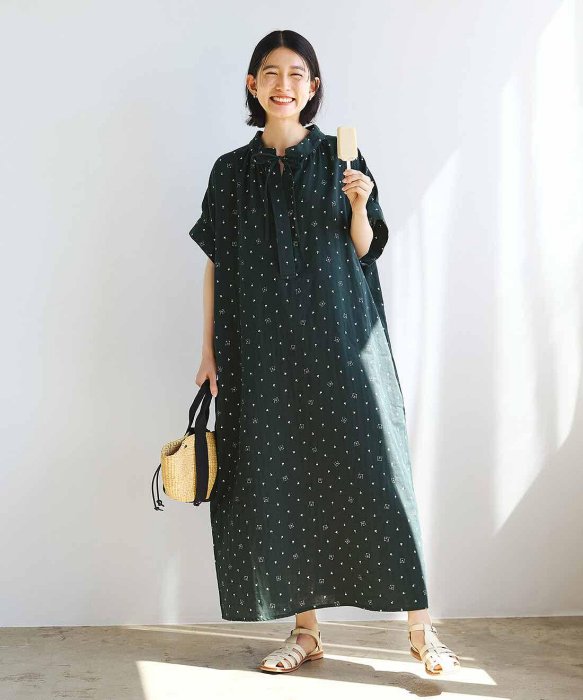 優寶購物《ubao.Tw》特貨品商城,黑貓宅配,取貨付款,日本 25夏 舒適純棉 雙層紗布 北極熊!? 沉靜苔綠色調 復古波點 立領短袖連身裙 (現貨款特價) | Yahoo拍賣