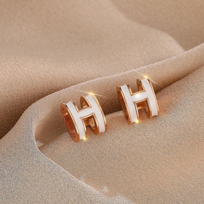 優寶購物《ubao.Tw》特貨品商城,黑貓宅配,取貨付款,新款現貨18K玫瑰金鈦鋼H字母耳環 | 輕奢琺琅滴油不鏽鋼垂墜耳環女生飾品滿299元發貨 | Yahoo拍賣