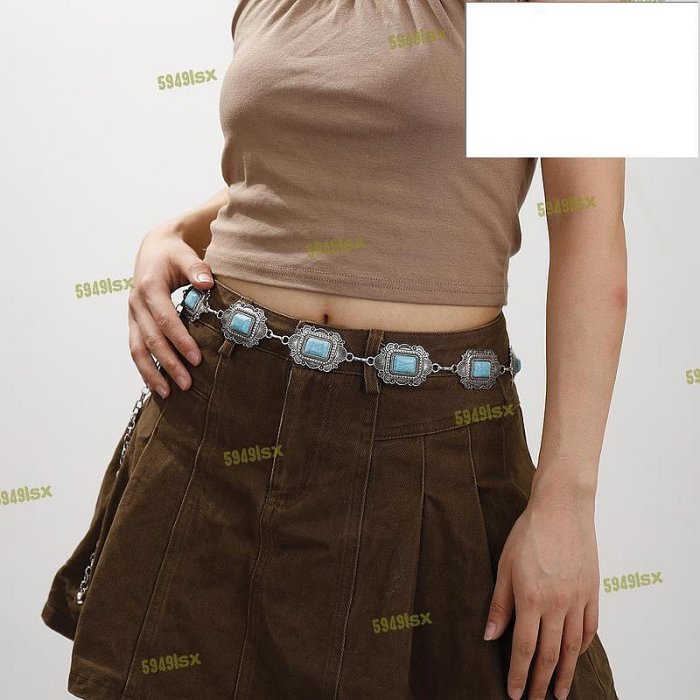 優寶購物《ubao.Tw》特貨品商城,黑貓宅配,取貨付款,【現貨免運】2023雕花合金民族風腰鏈復古綠松石腰鏈高級感誇張女士身體鏈飾品 | Yahoo拍賣