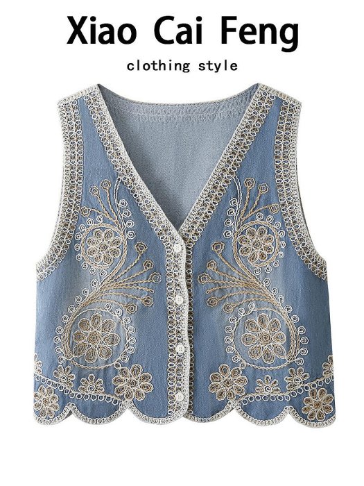 優寶購物《ubao.Tw》特貨品商城,黑貓宅配,取貨付款,國風重工刺繡牛仔馬甲背心女夏季薄款穿搭無袖疊穿坎肩不規則上衣 | Yahoo拍賣