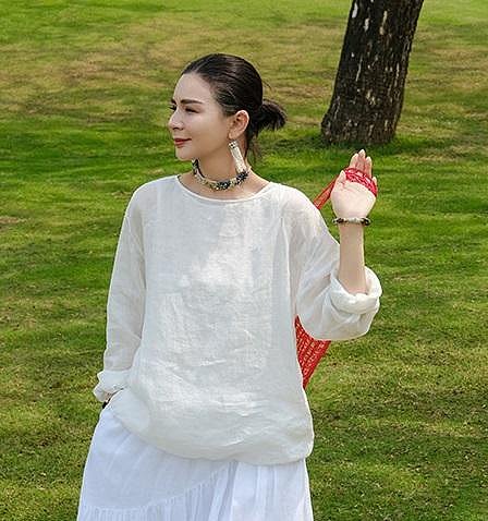 優寶購物《ubao.Tw》特貨品商城,黑貓宅配,取貨付款,【子芸芳】100支苧麻鹽縮砂洗工藝高密蓬鬆感一字領套頭T恤疊穿麻衫 | Yahoo拍賣