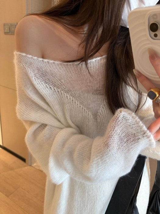 優寶購物《ubao.Tw》特貨品商城,黑貓宅配,取貨付款,若隱若現~早秋慵懶 拼接設計薄款大圓領毛衣 ♥ C Select shop | Yahoo拍賣