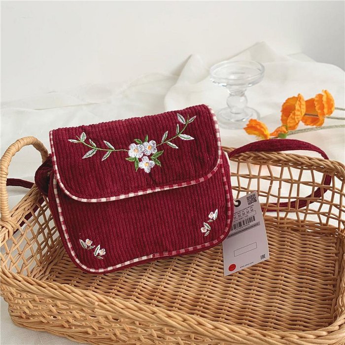 優寶購物《ubao.Tw》特貨品商城,黑貓宅配,取貨付款,全新 專櫃品牌ZARA 棗紅色燈芯絨繡花小包/方包/側背包 | Yahoo拍賣