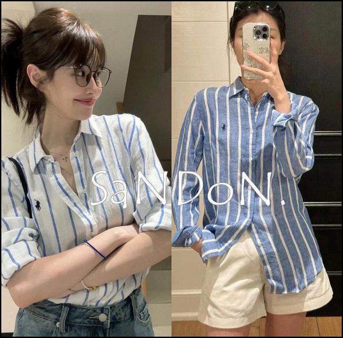 優寶購物《ubao.Tw》特貨品商城,黑貓宅配,取貨付款,SaNDoN x『Polo Ralph Lauren』竹節棉涼爽系列線條條紋防曬襯衫 250811 | Yahoo拍賣