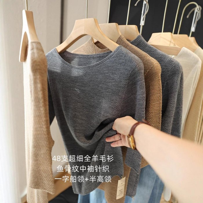 優寶購物《ubao.Tw》特貨品商城,黑貓宅配,取貨付款,支超細羊毛衫魚骨紋一A字V領顯瘦無縫半高V領中袖針織衫女╭☆ Queen☆like* 嚴選女裝 #51208 | Yahoo拍賣