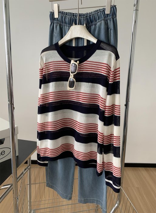 優寶購物《ubao.Tw》特貨品商城,黑貓宅配,取貨付款,☆ANGELA HOUSE☆韓系♡初秋涼感冰爽絲條紋長袖針織衫上衣 ✅商品追加 | Yahoo拍賣