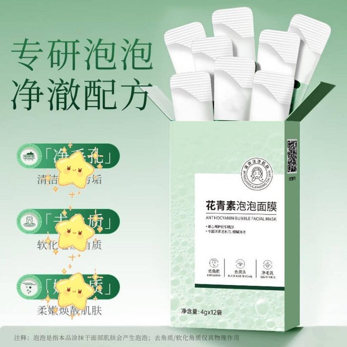 優寶購物《ubao.Tw》特貨品商城,黑貓宅配,取貨付款,【花青素泡泡面膜】補水黑頭清潔深層泥膜泡泡面膜4g/12條/盒 | Yahoo拍賣