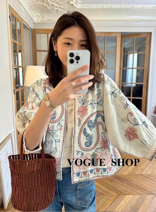 優寶購物《ubao.Tw》特貨品商城,黑貓宅配,取貨付款,南法莊園刺繡印花圓領7分袖棉麻短外套: 預購S~XL SIZE | Yahoo拍賣