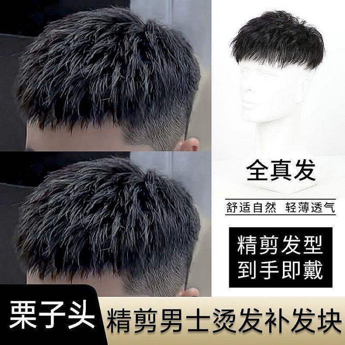 優寶購物《ubao.Tw》特貨品商城,黑貓宅配,取貨付款,假發男短發全真發韓版栗子頭燙發男士無痕假發片補頭頂補發男~喜柿小鋪 | Yahoo拍賣