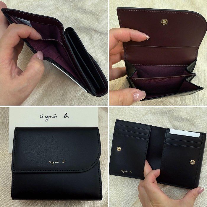 優寶購物《ubao.Tw》特貨品商城,黑貓宅配,取貨付款,全新 agnes b 黑色 酒紅色 圓弧 燙金Logo 牛皮 原皮 9卡 皮夾 短夾 錢包 女用 小b 正品 撞色 雙色 | Yahoo拍賣