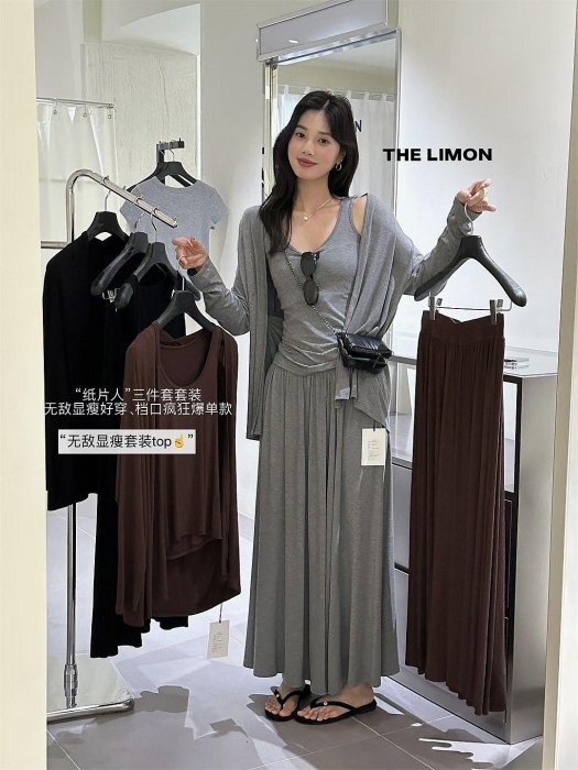 優寶購物《ubao.Tw》特貨品商城,黑貓宅配,取貨付款,韓版 韓系慵懶感三件式套裝 背心+外罩+長裙 MO8647 9119 | Yahoo拍賣