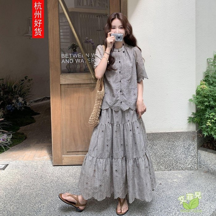 優寶購物《ubao.Tw》特貨品商城,黑貓宅配,取貨付款,艾菲兒=灰色高端精致套裝裙女夏2025新款法式設計感短袖上衣半身裙兩件套 | Yahoo拍賣