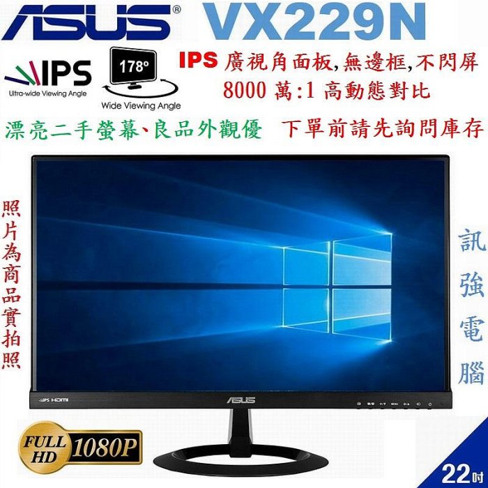 優寶購物《ubao.Tw》特貨品商城,黑貓宅配,取貨付款,華碩 ASUS VX229N / 22吋 IPS面板 顯示器、D-Sub、DVI-D輸入、無邊框、不閃屏、二手外觀品優的良品 | Yahoo拍賣