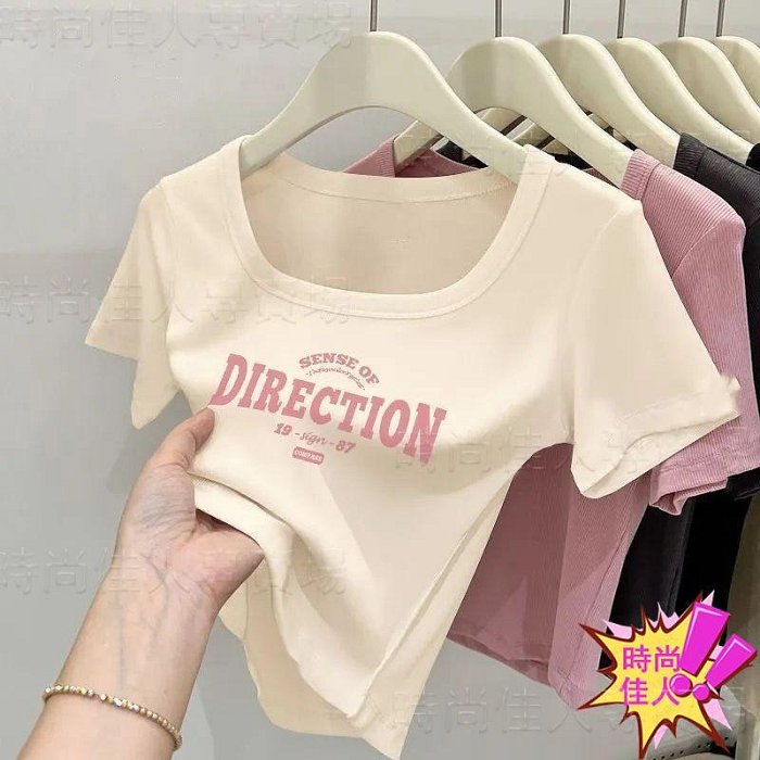 優寶購物《ubao.Tw》特貨品商城,黑貓宅配,取貨付款,時尚佳人=短款方領短袖t恤女夏季正肩修身短款高腰小眾露臍 | Yahoo拍賣