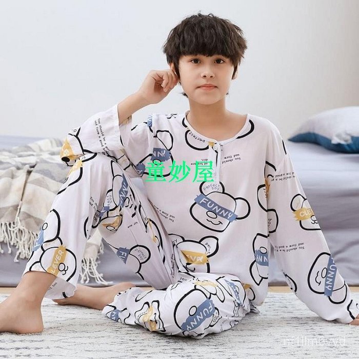 優寶購物《ubao.Tw》特貨品商城,黑貓宅配,取貨付款,青少年男孩空調家居服大童薄款綿綢長袖男童套裝夏季兒童棉綢睡衣男童睡衣 MGYF-童妙屋 滿599免運 | Yahoo拍賣