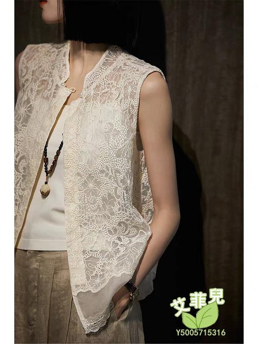 優寶購物《ubao.Tw》特貨品商城,黑貓宅配,取貨付款,艾菲兒=新中式篙笈感蕾絲花朵刺繡立領盤扣復古背心馬甲上衣 | Yahoo拍賣