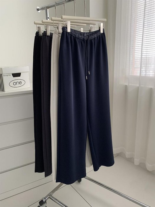 優寶購物《ubao.Tw》特貨品商城,黑貓宅配,取貨付款,鬆弛感慵懶顯瘦拼接高腰闊腿褲女秋季空氣層抽繩直筒拖地長褲╭☆ Queen☆like* 嚴選女裝 #51225 | Yahoo拍賣
