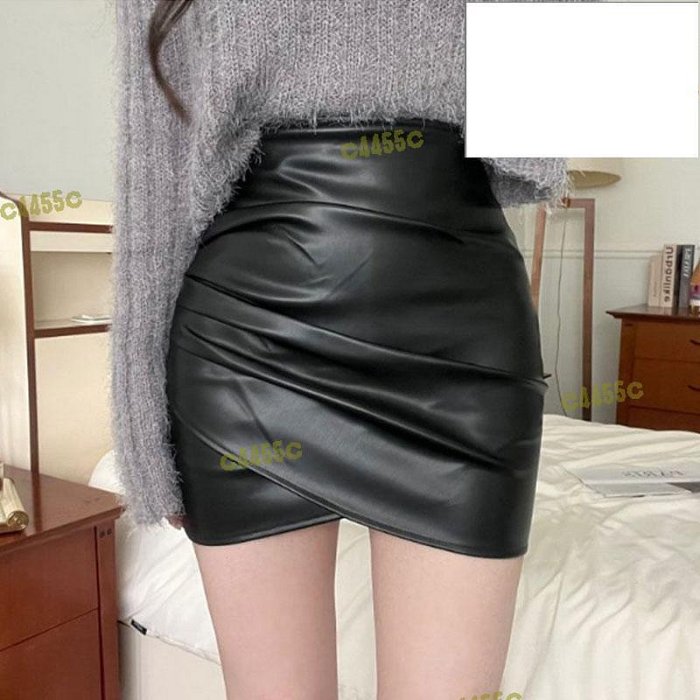 優寶購物《ubao.Tw》特貨品商城,黑貓宅配,取貨付款,【全館免運】黑色褶皺不規則半身裙短款女秋冬韓版高腰緊身 pu皮包臀一步裙 | Yahoo拍賣