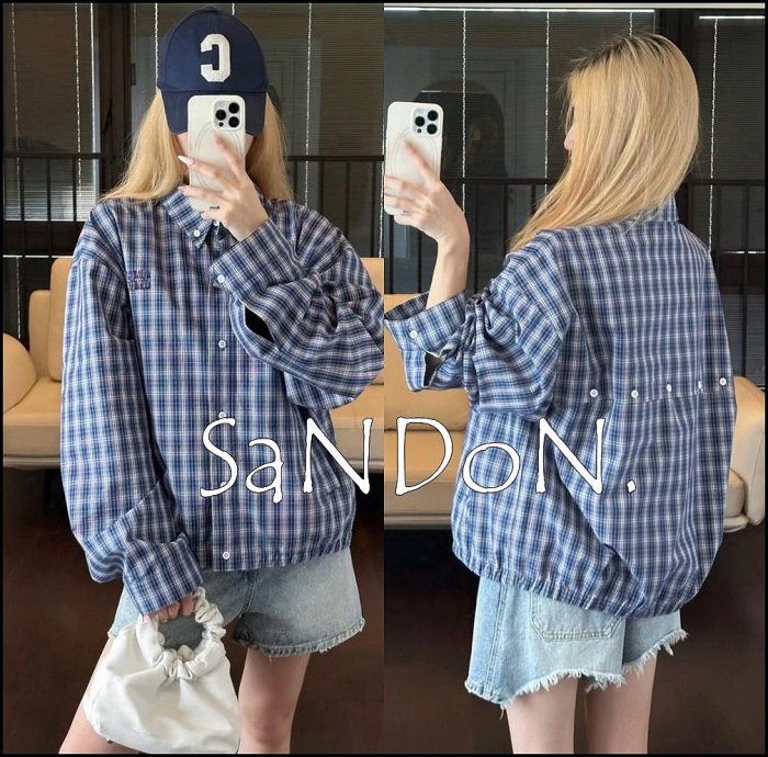 優寶購物《ubao.Tw》特貨品商城,黑貓宅配,取貨付款,SaNDoN x『Miu Miu』秋季限定販售 格紋設計復古輕薄棉紗外套 250901 | Yahoo拍賣