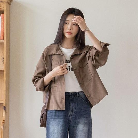 優寶購物《ubao.Tw》特貨品商城,黑貓宅配,取貨付款,Bellee 正韓 翻蓋口袋側開衩寬鬆襯衫夾克外套 (2色) 【0827-10】 | Yahoo拍賣
