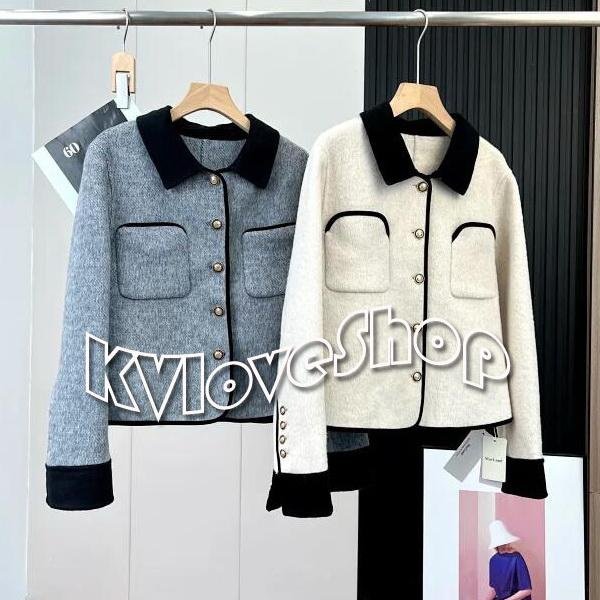 優寶購物《ubao.Tw》特貨品商城,黑貓宅配,取貨付款,KVLOVE SHOP〥外貿單 冬時尚小香風兩色撞色翻領羊毛呢寬鬆短外套 2色〥特價 | Yahoo拍賣