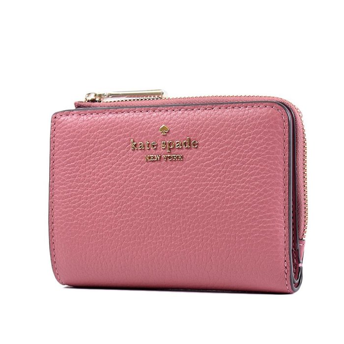 優寶購物《ubao.Tw》特貨品商城,黑貓宅配,取貨付款,美國正品KATE SPADE Lena L型拉鍊袋荔枝紋釦式短夾-乾燥玫瑰粉【現貨】 | Yahoo拍賣