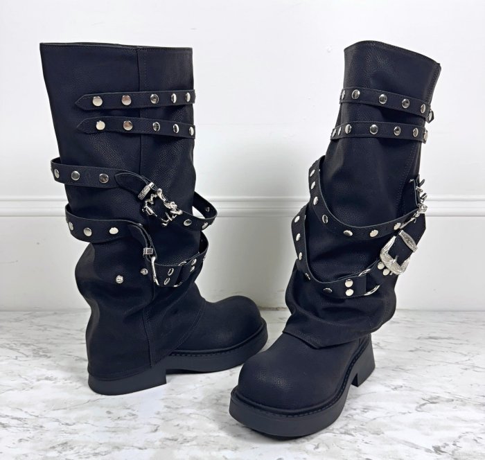 優寶購物《ubao.Tw》特貨品商城,黑貓宅配,取貨付款,[我是寶琪] 關穎二手商品 黑色鉚釘 內增高靴 | Yahoo拍賣