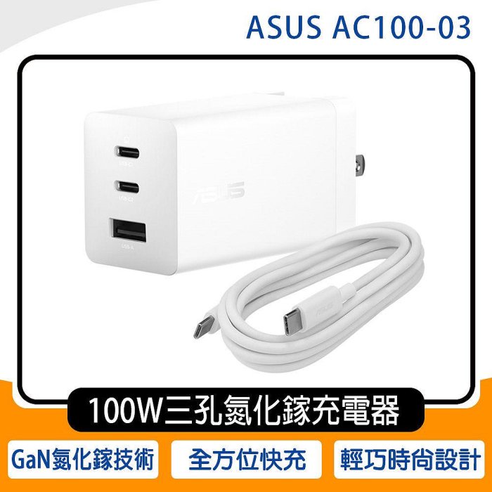 優寶購物《ubao.Tw》特貨品商城,黑貓宅配,取貨付款,《公司貨含稅》ASUS 100W USB-C GaN 三孔氮化鎵通用充電器/附線1.5m(2C1A)(AC100-03) | Yahoo拍賣