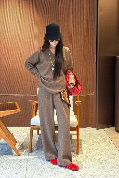優寶購物《ubao.Tw》特貨品商城,黑貓宅配,取貨付款,✈️ 巴黎小時光一間外貿老店✈️ 65%澳毛 花紗羊毛褲 花紗V領上衣 鬆弛感慵懶風 毛呢褲 休閒闊腿褲 090477 | Yahoo拍賣