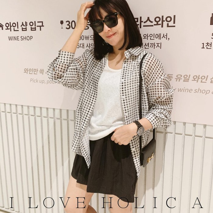 優寶購物《ubao.Tw》特貨品商城,黑貓宅配,取貨付款,I LOVE HOLIC A !! 涼感不皺.小格黑衫 | Yahoo拍賣