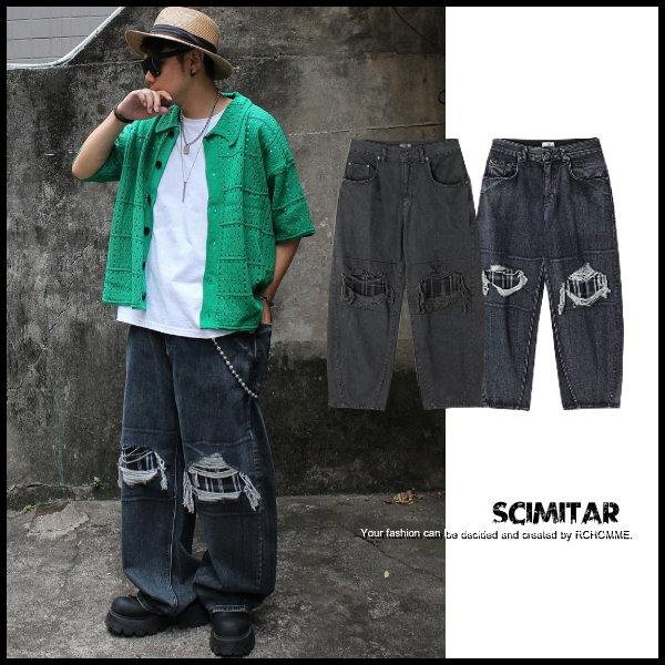 優寶購物《ubao.Tw》特貨品商城,黑貓宅配,取貨付款,。R.C。stage.正韓概念款!! 抽鬚破膝+格紋補丁造型.高磅.寬鬆剪裁古著水洗牛仔褲.落地寬褲GD!!~促銷890 | Yahoo拍賣