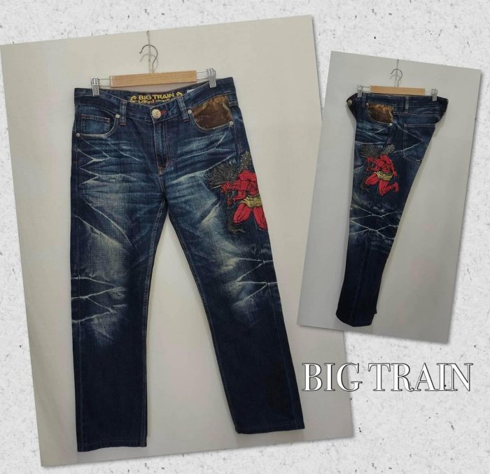 優寶購物《ubao.Tw》特貨品商城,黑貓宅配,取貨付款,☀️二手衣☀️BIG TRAIN 男款 赤與青鬼系列 日本素材刺繡牛仔褲2L號ADJ00211 | Yahoo拍賣