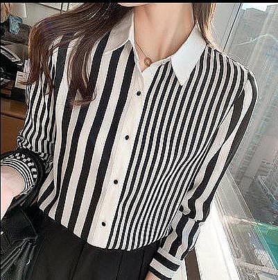 優寶購物《ubao.Tw》特貨品商城,黑貓宅配,取貨付款,長袖上衣 T恤6632網紅實拍女神秋裝 條紋雪紡 設計感 女士長袖襯衫H308A. | Yahoo拍賣