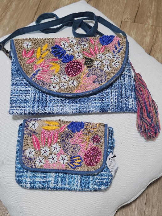 優寶購物《ubao.Tw》特貨品商城,黑貓宅配,取貨付款,馬來西亞 NAPEL 手工亮片刺繡串珠 毛線編織 藍色毛呢 斜背包 /零錢包 手拿包 化妝包 | Yahoo拍賣