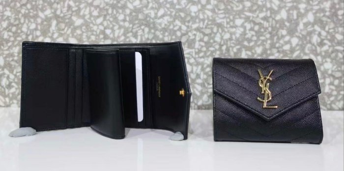 優寶購物《ubao.Tw》特貨品商城,黑貓宅配,取貨付款,[4real]YSL 牛皮三折短夾 黑金 | Yahoo拍賣