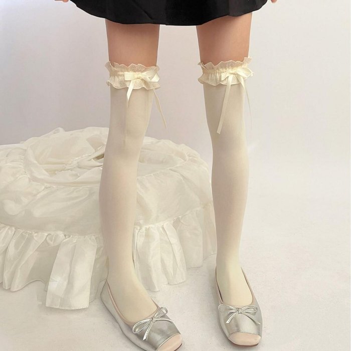 優寶購物《ubao.Tw》特貨品商城,黑貓宅配,取貨付款,過膝襪 長筒襪 長統襪 大腿襪 lolita奶白過膝襪女天鵝絨甜美花邊蝴蝶結蕾絲長筒襪子灰色小腿襪64 DB036 | Yahoo拍賣