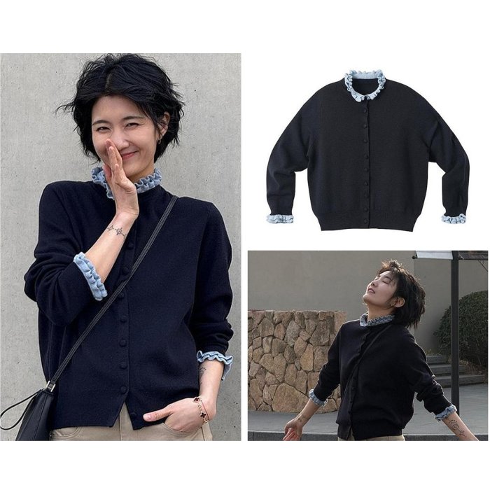 優寶購物《ubao.Tw》特貨品商城,黑貓宅配,取貨付款,早秋新款 藏青色荷葉邊羊毛針織衫 長袖開襟毛衣 [Classique*真經典] 091101 | Yahoo拍賣