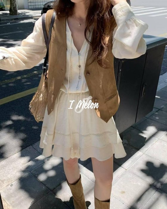 優寶購物《ubao.Tw》特貨品商城,黑貓宅配,取貨付款,【九月新品b】V領排釦無袖外搭麂皮背心※淺駝色/深咖啡 ::: i-MelOn :::100%韓國空運 正韓 | Yahoo拍賣